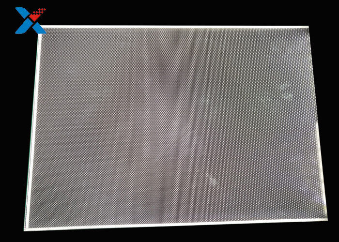 La placa de guía ligera se hace del acrílico óptico del grado, y después utiliza los materiales de alta tecnología con el índice de refracción extremadamente alto y ninguna absorción de la luz. La impresión de tecnología imprime puntos de la guía ligera. La hoja de acrílico del óptico-grado se utiliza para absorber la luz emitida de la lámpara y para permanecer en la superficie de la hoja de acrílico del óptico-grado. Cuando la luz golpea cada punto de la guía ligera, la luz reflejada se separará a todos los ángulos, y después destruirá las condiciones de la reflexión y será emitida de delante de la placa de guía ligera. A través de diversos puntos de la guía ligera de la diversos densidad y tamaño, la placa de guía ligera se puede hacer para emitir la luz uniformemente. El propósito de la hoja reflexiva es reflejar la luz expuesta en el fondo nuevamente dentro de la placa de guía ligera para mejorar la eficacia del uso de la luz; bajo condición de la misma área del brillo luminoso, la eficacia luminosa es alta y el consumo de energía es bajo. La placa de guía ligera de un sólo lado del arsenal de la microestructura adopta generalmente el proceso de fabricación del moldeado de protuberancia.